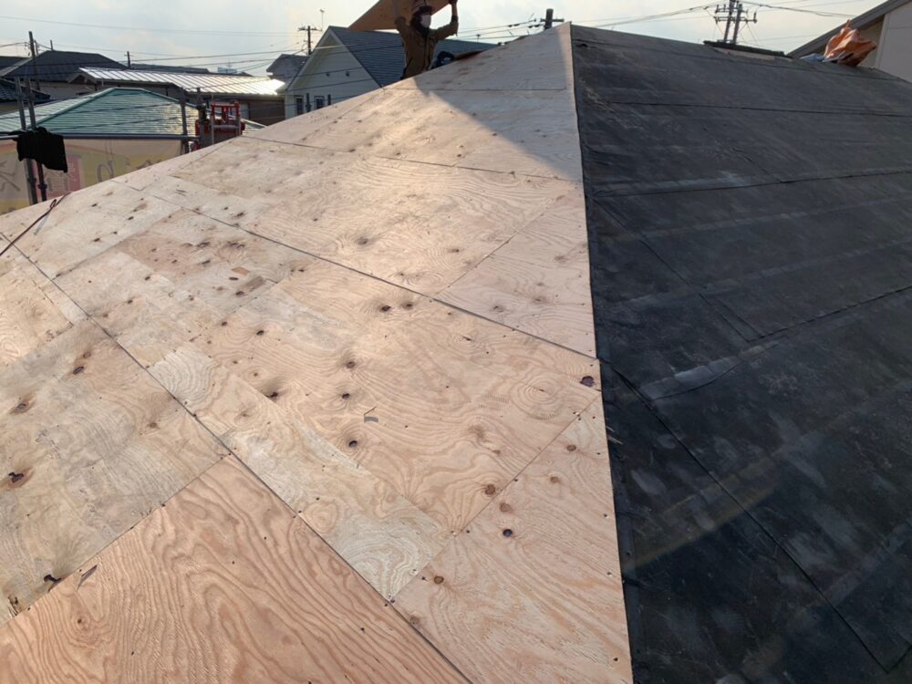 屋根は野地板にルーフィングが敷いてあります。