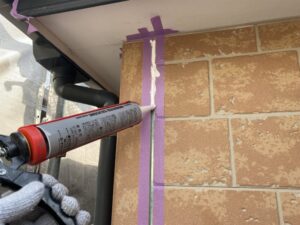 その後、コーキング材を施工します。乾くまで少しこのままで!