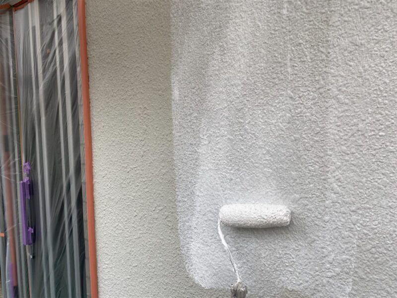 塗装工事では、高圧洗浄・ひび割れ補修の後に下塗り塗装を行います。下塗りを