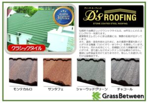 一見観ると、瓦屋根?と思う方もいらっしゃると思いますが、表面に自然石粒を高温溶着させた軽量鋼板の屋根材です。