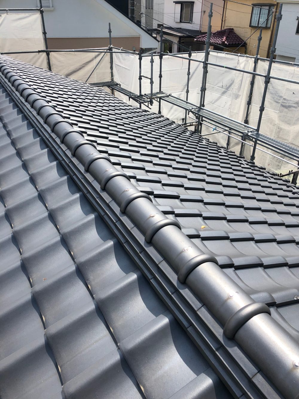 今回の屋根は瓦撤去をしてから、ローマンのネロ色に葺き替えます。(黒です)
