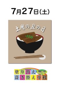 土用の丑の日は年に2回ある年もありますが、今年は1回だけのようです。