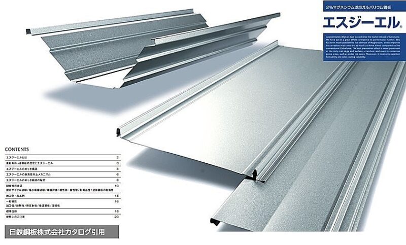 エスジーエルはガルバリウム鋼板のめっき組成に新たにマグネシウムを追加した屋根材です。