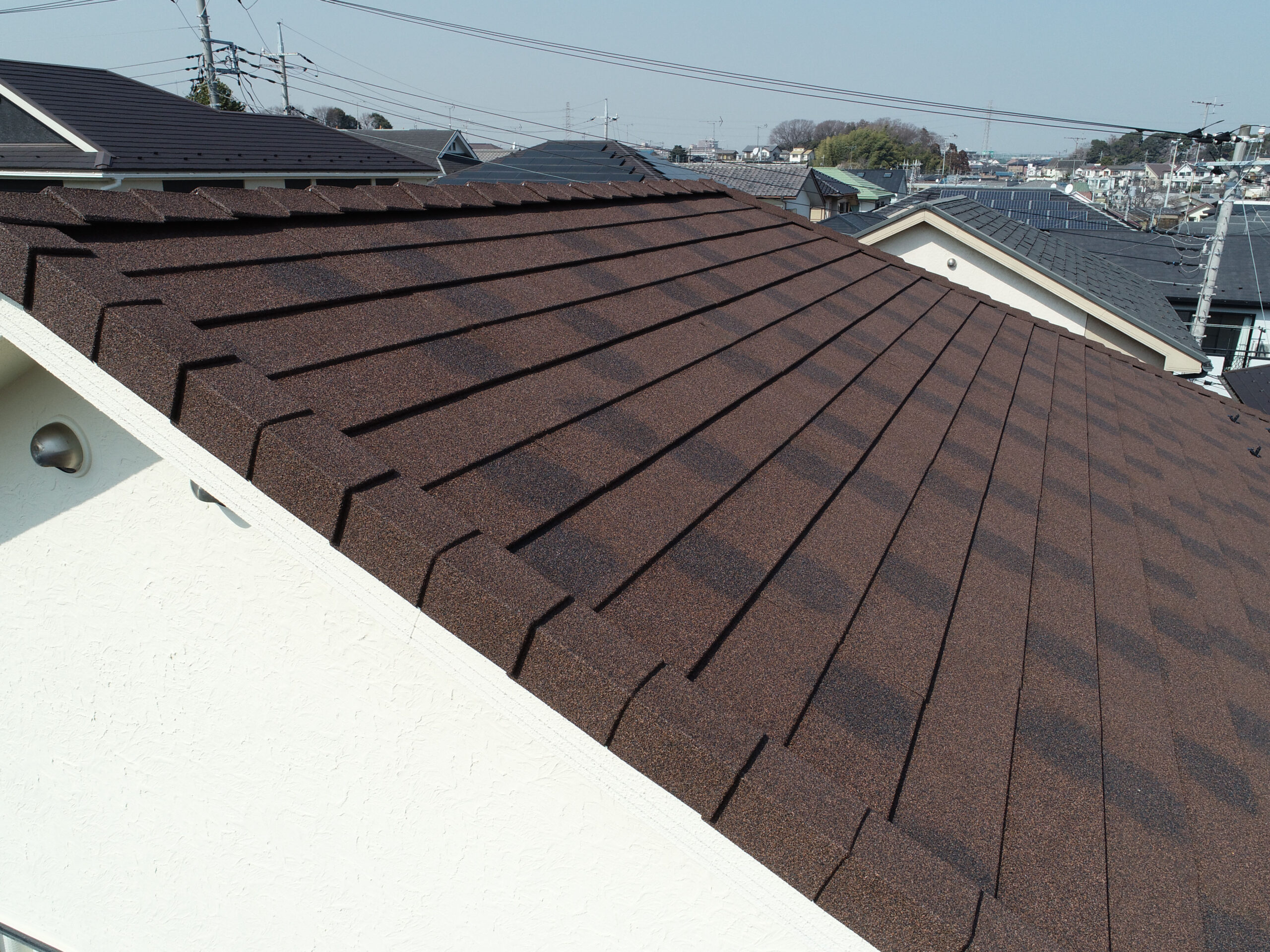 ついでに外壁塗装も行い、屋根材はディーズルーフィングのディプロマットスター屋根カバーではなく、葺き替えで工事をしました。