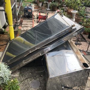 まずは水を抜きます。太陽熱で温められたお湯はなかなかの熱さです。水抜きの時に湯気がでていました。