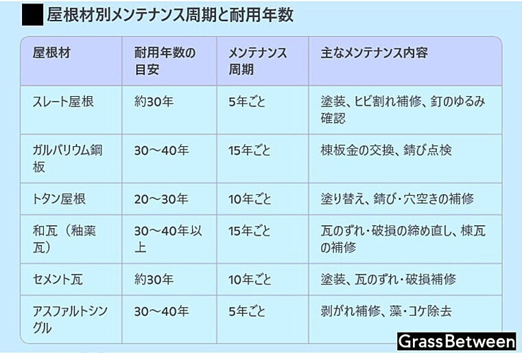 屋根のメンテナンス周期は、屋根材の種類によって大きく異なります。