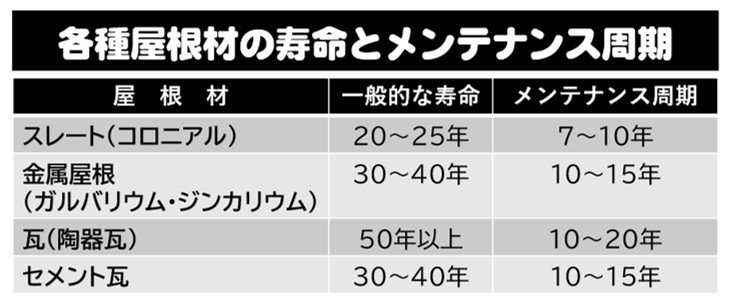 まずは、屋根材ごとの一般的な寿命を知っておきましょう。