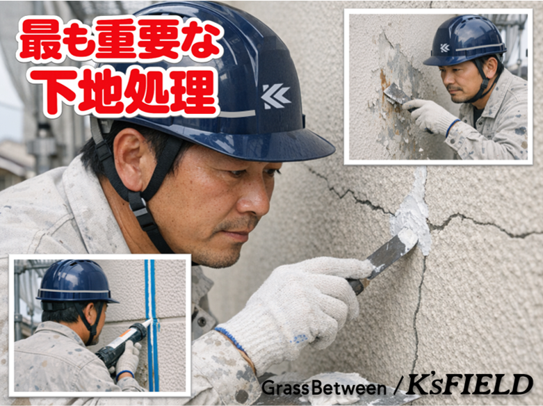 高圧洗浄、ひび割れ補修、ケレン作業、シーリング打ち替え…。