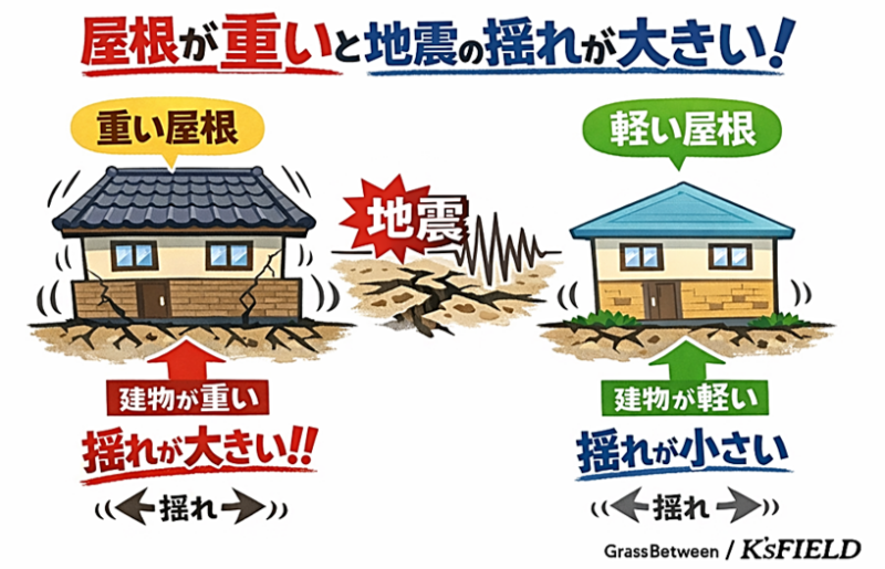 実は、屋根が軽いだけで建物の揺れは大きく変わります。