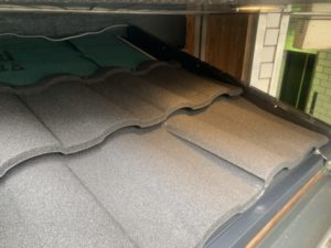まずルーフィング(防水材)を貼り、周りの板金、下地の木をとりつけます。下地の木材はハイブリッド建材なので腐りません!