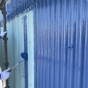 倉庫正面が長年の汚れで汚かったので綺麗に塗り替えています。
