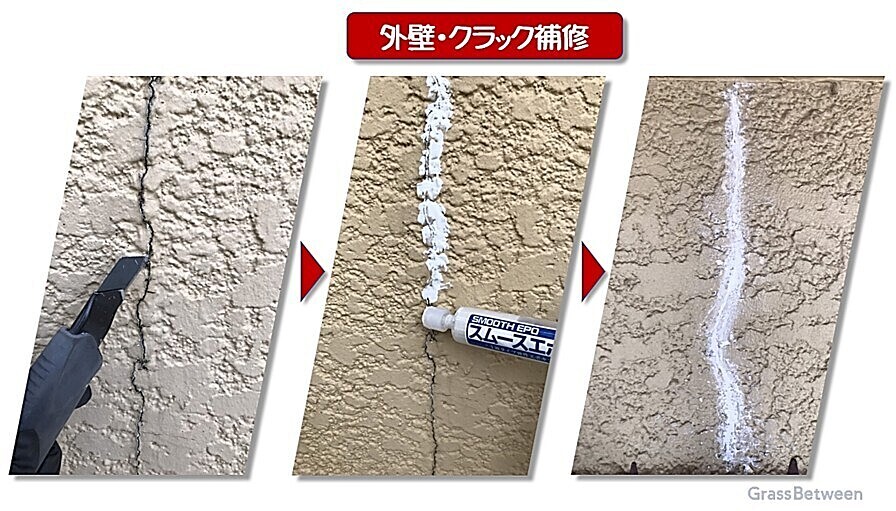 クラックをDIYでなおすには? 幅0.3mm以下の「ヘアークラック」であれば、DIYでの補修が可能です。 専用のシーリング材やコーキング材を使って、手順を守れば自宅でも安全に対応できます。 ❶ DIYで補...