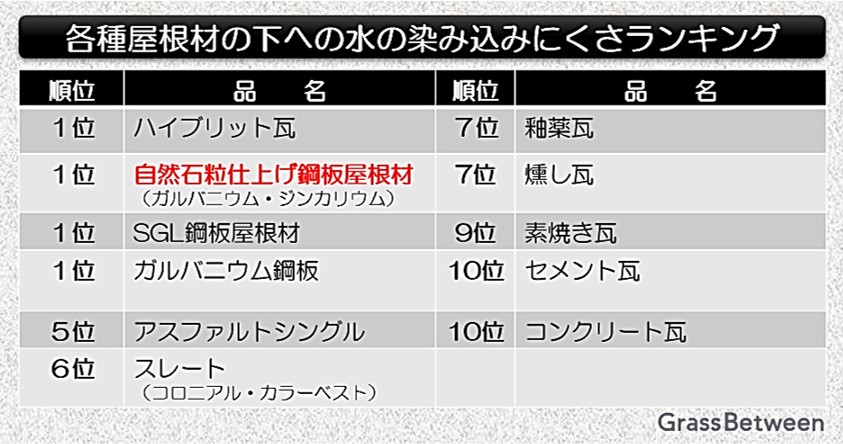◆◆屋根材下への雨水侵入しにくさランキング!