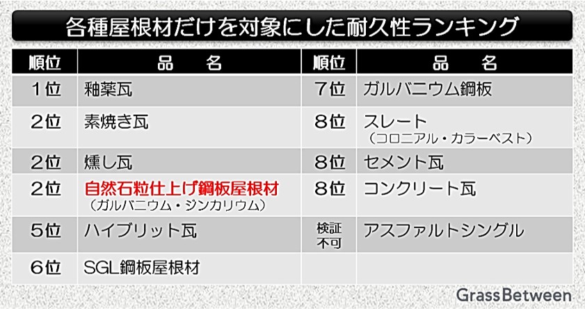 ◆◆屋根材だけを対象にした耐久性ランキング!