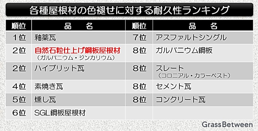 7◆◆屋根材だけを対象にした耐久性ランキング!