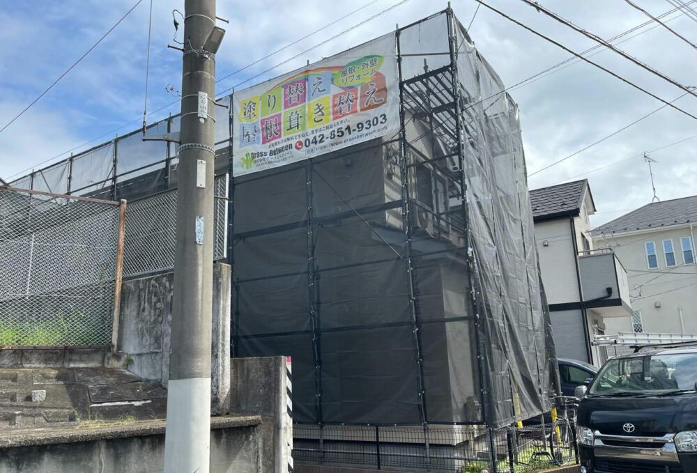 足場組立・飛散防止シートを設置し、いよいよ工事を開始です!