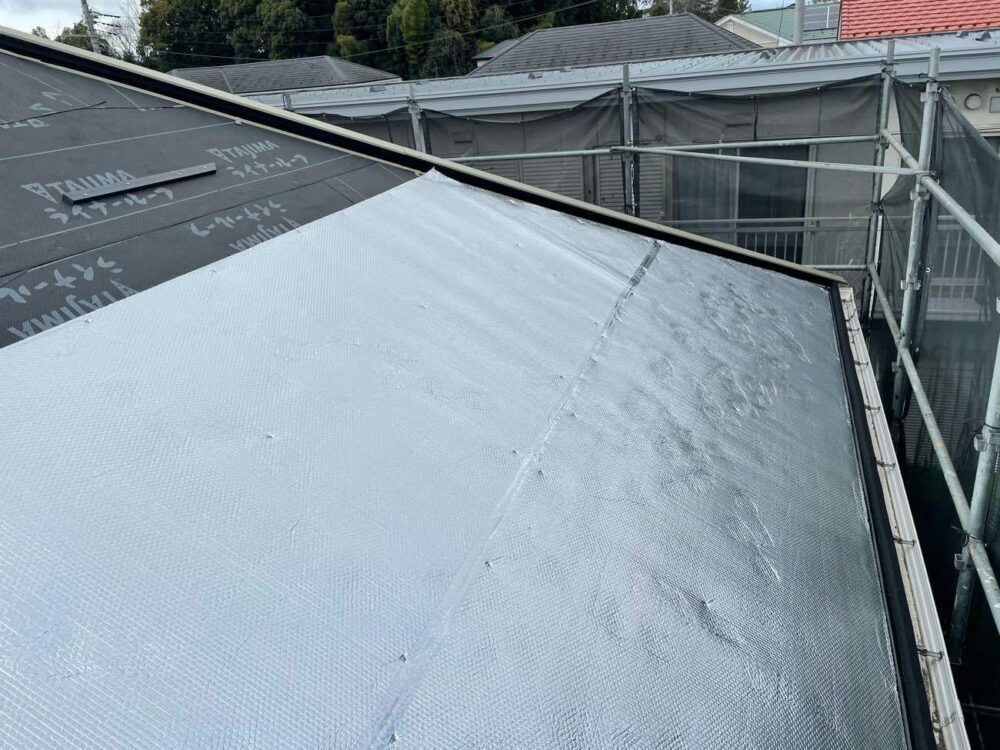 新しいルーフィングを施工したら、軒先から遮熱材の「アストロフォイル」を施工していきます。